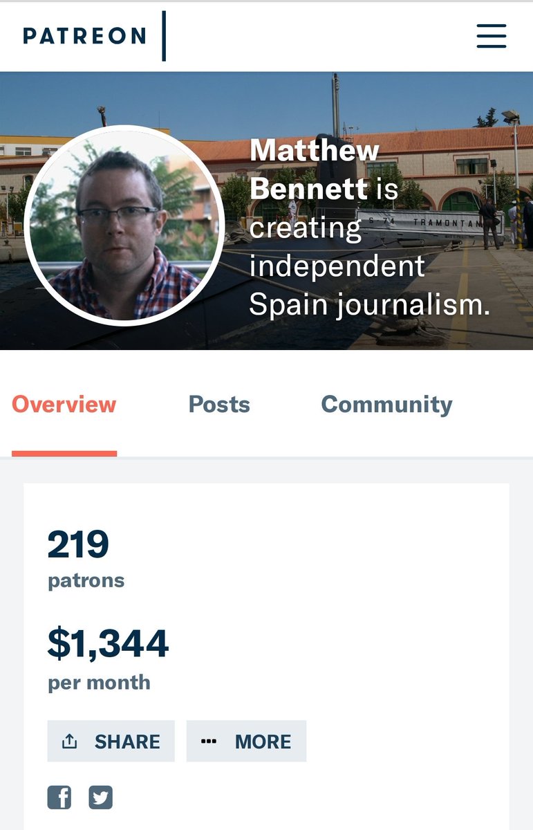 En un día le conseguimos a Matthew 21 patrocinadores más. Si estás harto del periodismo que no verifica la información, si necesitas volver a confiar en la palabra de un periodista, invita a Matthew a 2 cafés al mes. O 3. O 7. Aquí: https://www.patreon.com/matthewbennett/overview … pic.twitter.com/2brdFYKQ92