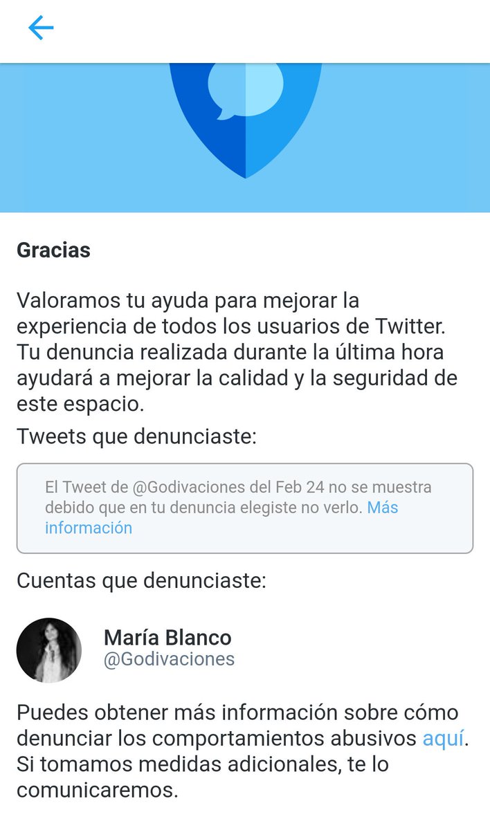 Qué es esto @TwitterEspana ? En ningún momento he denunciado ningún tuit de @Godivaciones . Me parece bastante vergonzoso. pic.twitter.com/6CvhigKNBh