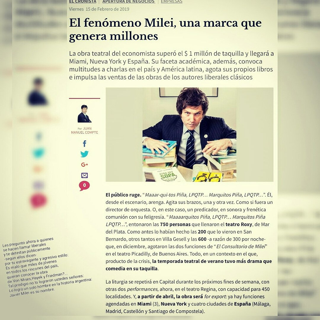 Les pregunto ahora a quienes se hacen llamar liberales y te detestan: Es malo que miles de jóvenes en todos los rincones del país quieran conocer la obra de Von Mises, Hayek y Friedman?… Tal prodigio no lo lograron ustedes: Lo logró un solo hombre en la historia: Javier Milei. pic.twitter.com/BcayWgc1gW