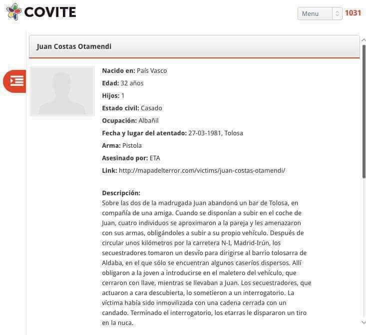 #TalDiaComoHoy #ETA asesinó en #Tolosa a Juan Costas, era albañil y se encontraba con una amiga cuando en ese momento fueron sorprendidos por cuatro etarras que les obligaron a subir a su propio coche, los llevaron a un lugar apartado, ahí le metieron a ella en el maletero. pic.twitter.com/FsvD9BHlC3