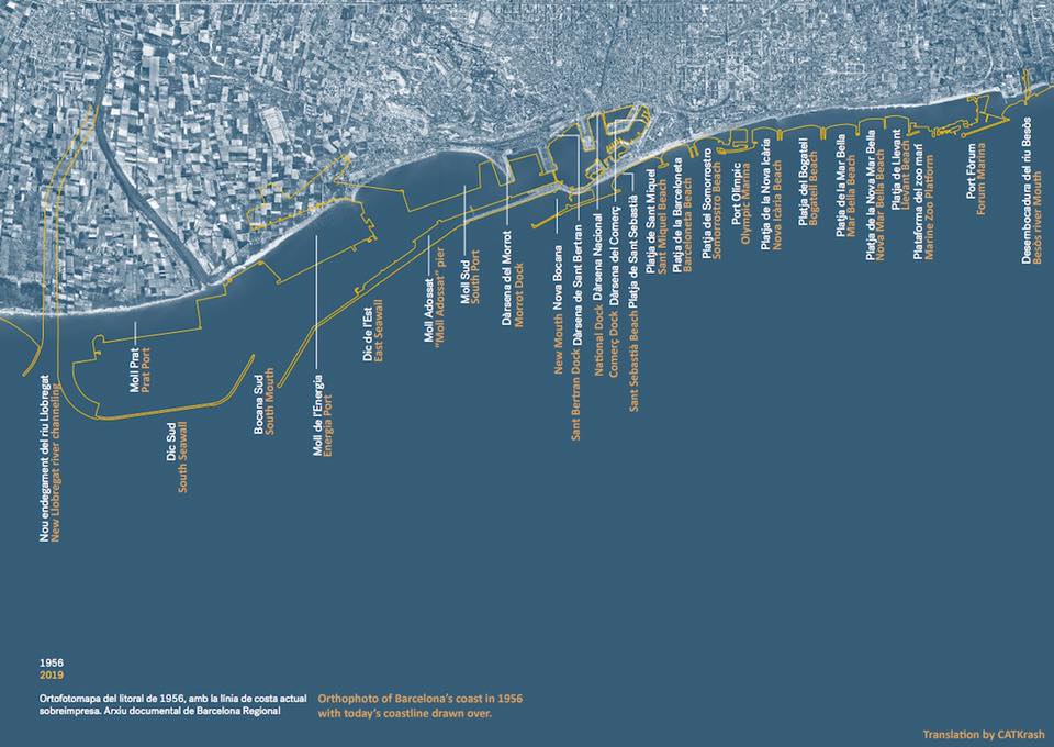 De este modo tan asombroso ha crecido la línea de costa de Barcelona entre 1956 y 2019. pic.twitter.com/gLes7qW3Ac
